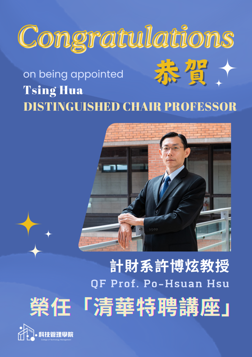 Congratulations to Professor Po-Hsuan Hsu on His Appointment as Tsing Hua Distinguished Chair Professor