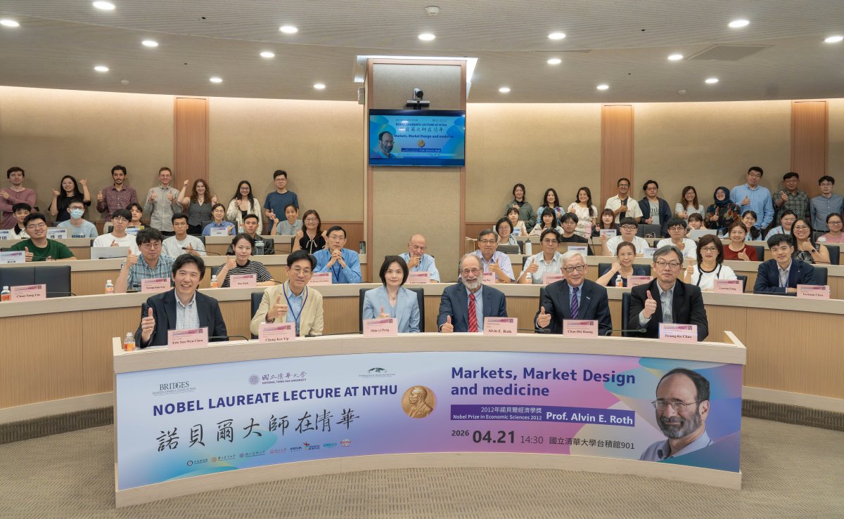 On April 20–21, Nobel Laureate Alvin E. Roth visited the College of Technology Management (CTM) at National Tsing Hua University (NTHU). Through a series of lectures and dialogues with Tsing Hua Distinguished Chair Professor Po-Hsuan Hsu and TSE Chair Professor Tain-Jy Chen, he demonstrated how economics serves as a powerful tool for solving humanity's most complex and sensitive challenges.