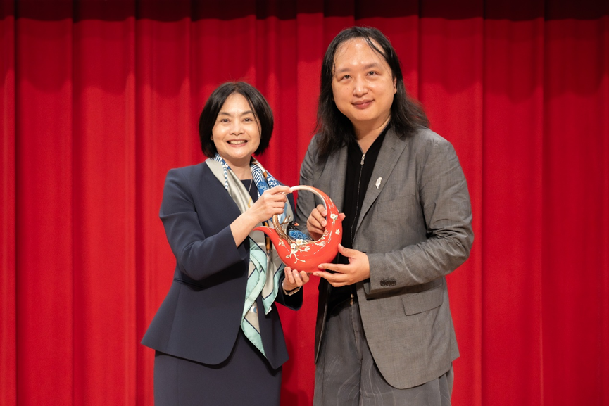 彭院長代表科管院贈送禮品,感謝唐大使精彩演講。