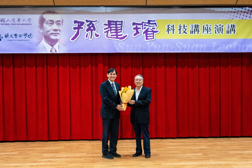 丘宏昌教授致贈感謝花束予施振榮董事長。