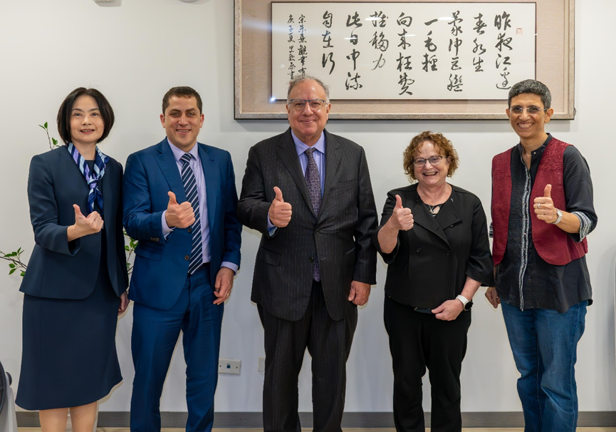 左起:彭心儀院長、西北大學法學院營運與國際合作Goldberg主任、前法學院院長Rodriguez教授、科技法律碩士班主任 Oster 教授、本校徐茉莉(Galit Shmueli)全球長