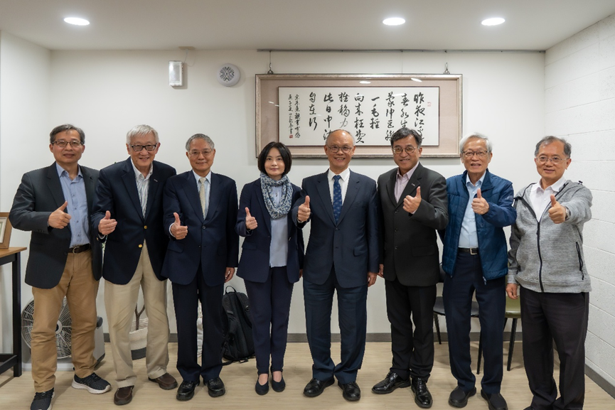 會前貴賓合照,左起: 科技管理學院 吳世英副院長、台北政經學院 黃朝熙副院長、陳添枝講座教授、科技管理學院 彭心儀院長、前經濟部長 鄧振中部長、清華大學 張祥光副校長、科管院 史欽泰榮譽講座教授、陳信文講座教授