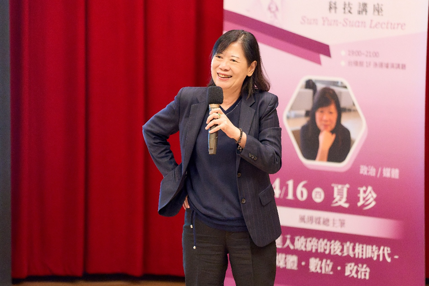 孫運璿科技講座於4月16日舉辦第二場演講,由風傳媒夏珍總主筆主講,以風趣的演講風格,用自身經歷帶領我們回顧台灣媒體三十年的變化。她提到,自己在解嚴後、媒體百花齊放的年代踏入新聞業,那是一個收視率高、影響力強的時期,名嘴對時事的評論往往當天就能引發社會討論。然而,隨著時代、科技的轉變,媒體生態逐漸惡化,如今甚至連從業者都不再相信這個產業的前景。