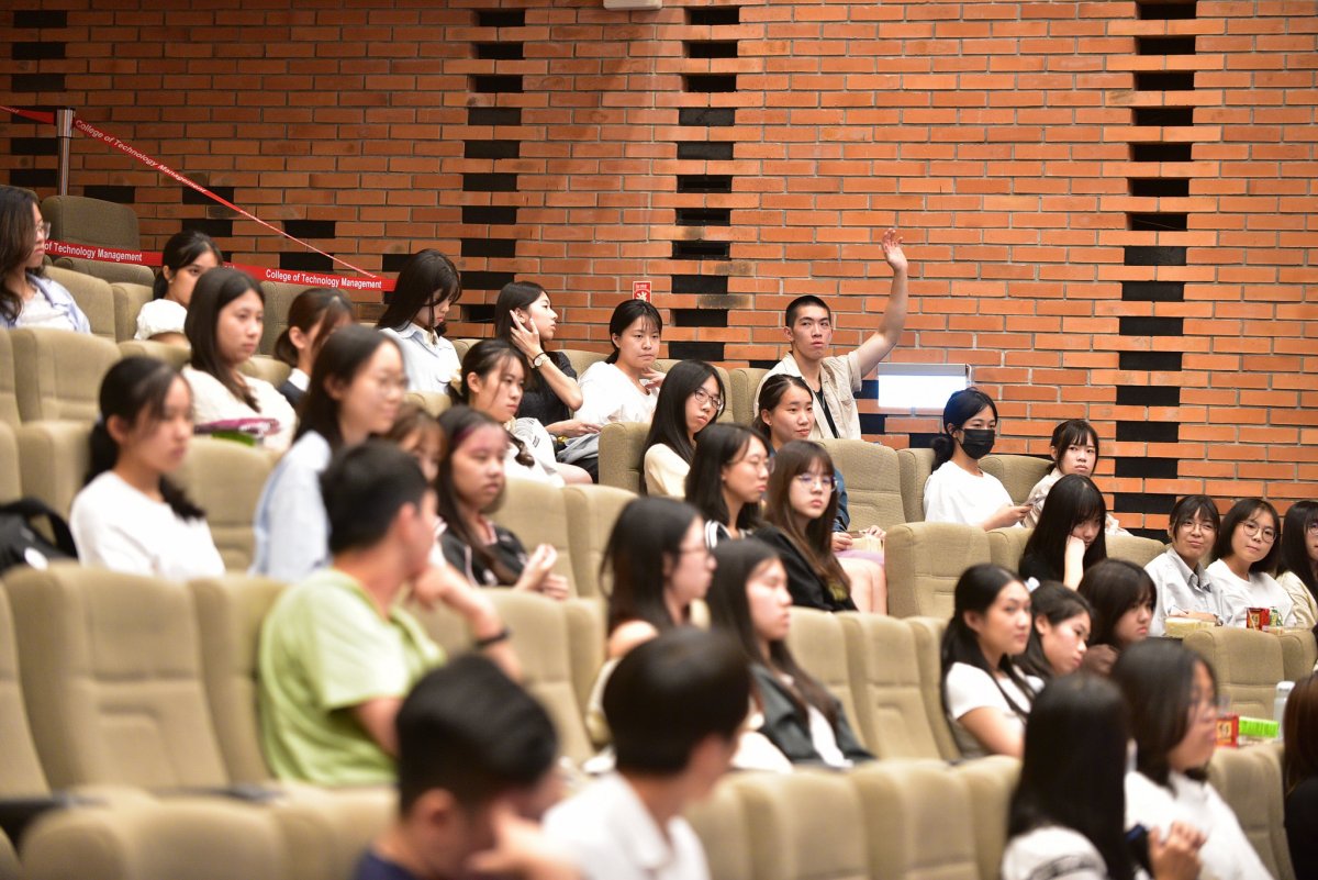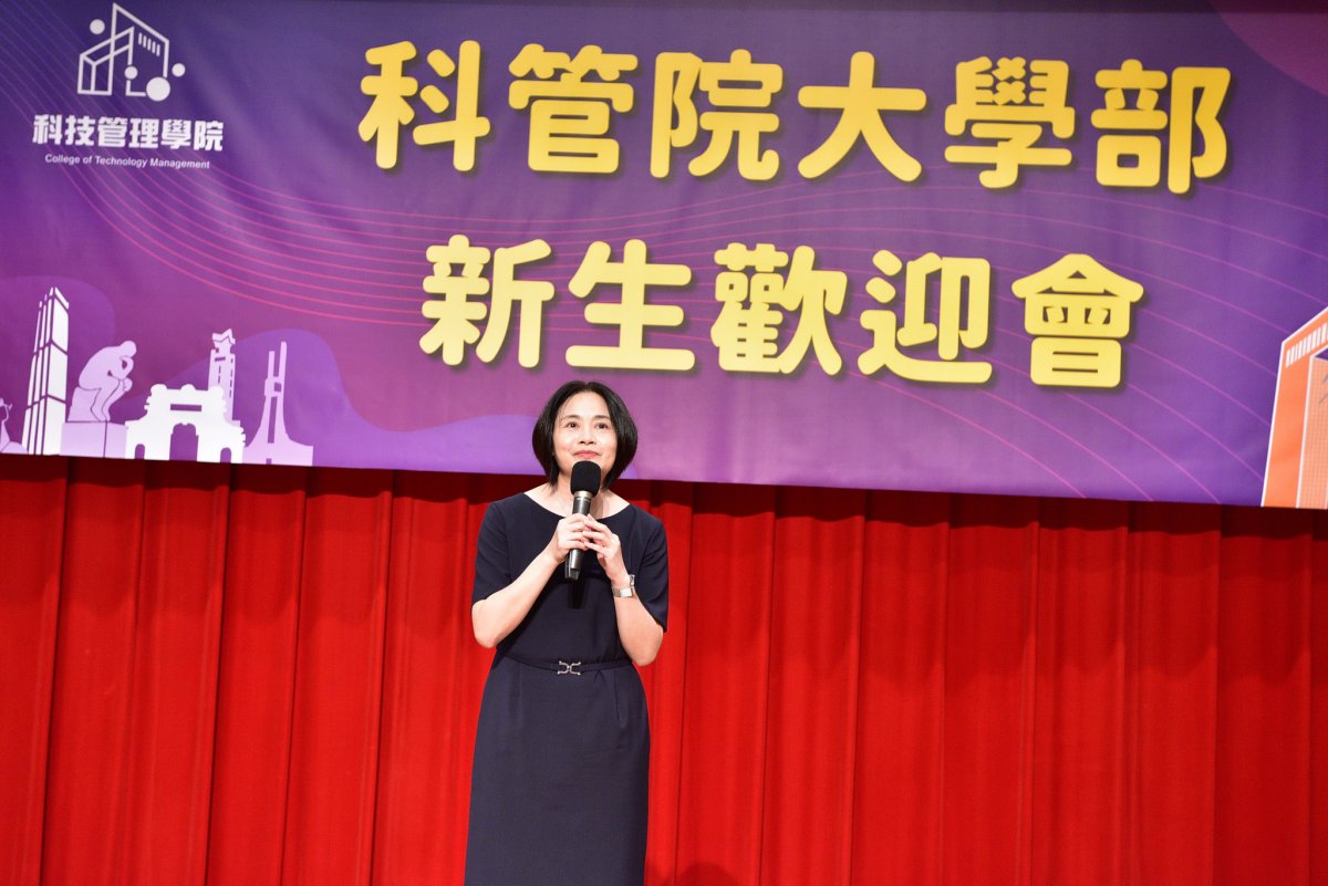 彭院長向新生致上最熱烈的歡迎,並特別指出,在這個科技快速發展的時代,科管院學生更需要具備跨域的能力。她鼓勵大家善用院內的資源與學習環境,透過企業實習與出國交換,找到人生方向,同時結交來自不同背景的朋友,建立廣闊的人際網路。